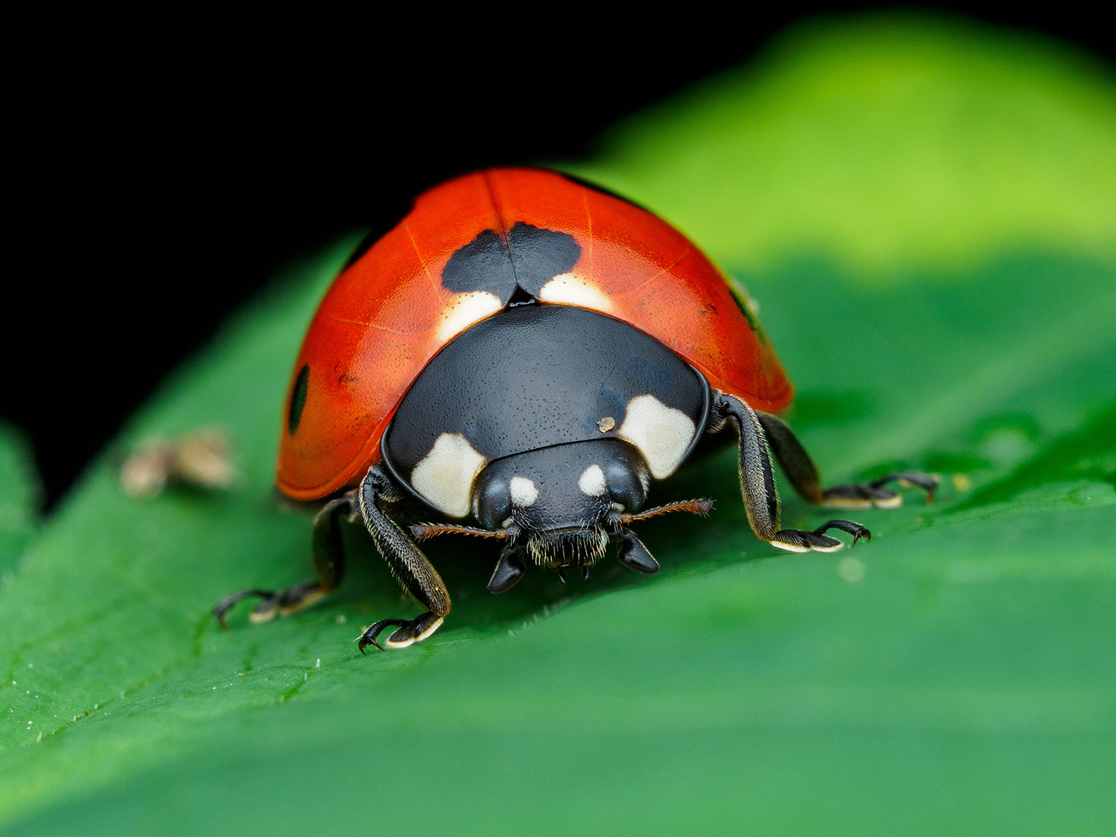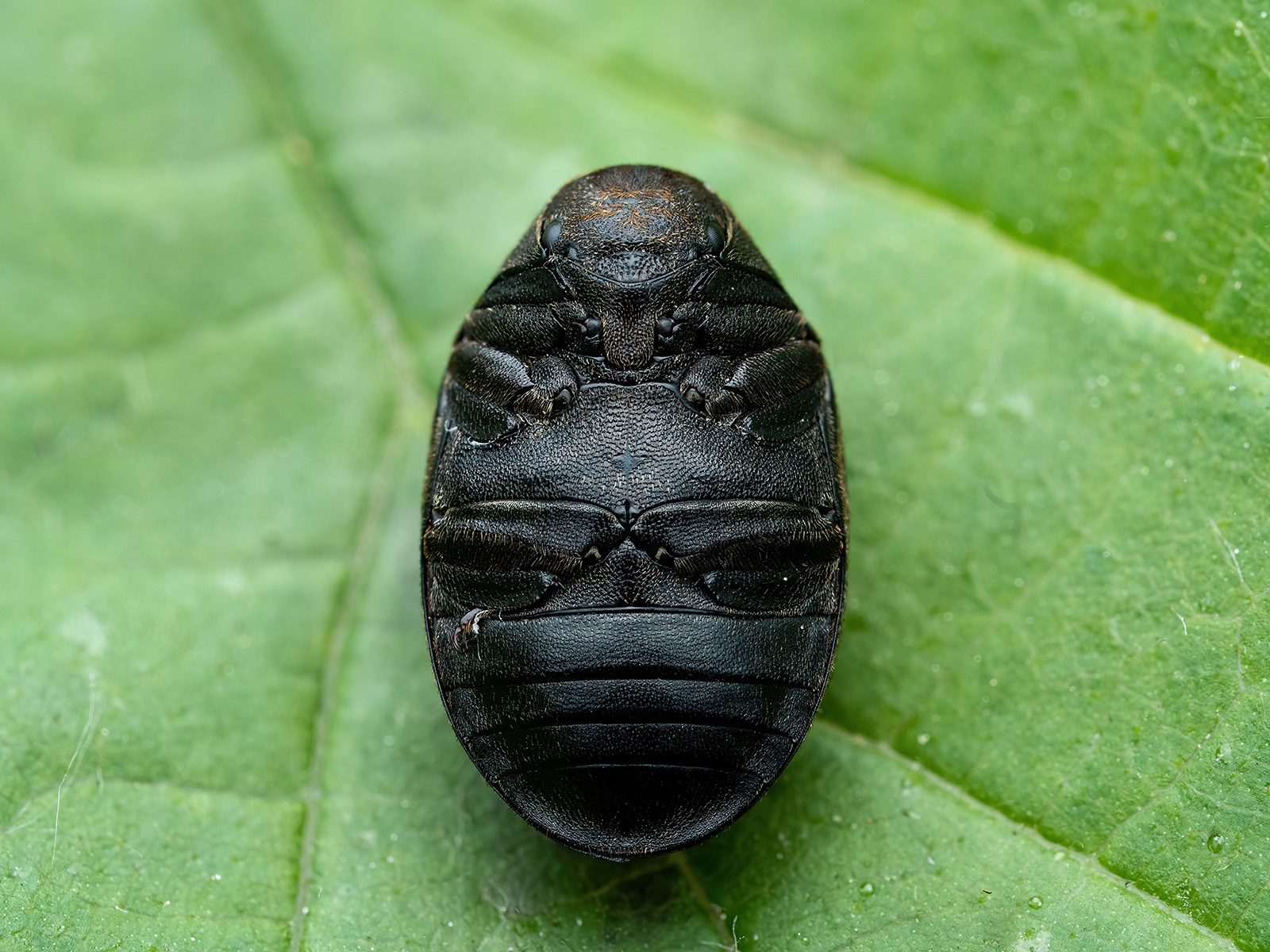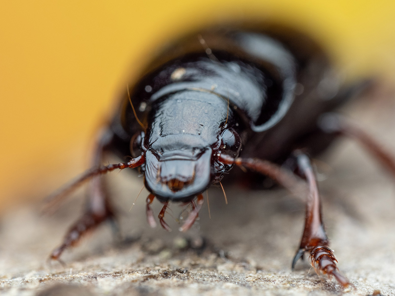 Enkele afbeelding van een focusstapel met een zeer dun scherpstelvlak op de ogen van de kever.