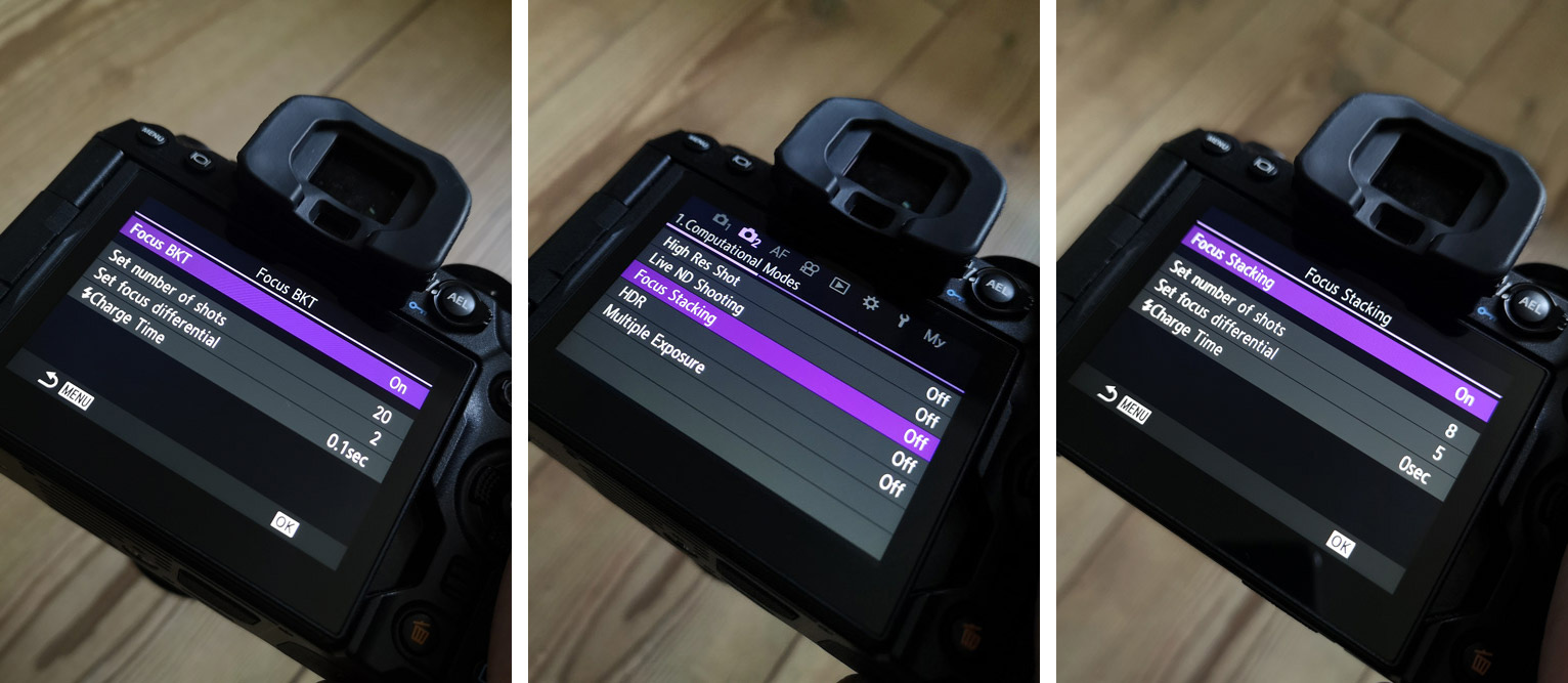Of we laten de camera ook deze stap overnemen (computational photography). De functie Focus-Stacking neemt zowel de zogenaamde Focus-Bracket en zet deze beelden vervolgens ook om in ons uiteindelijke beeld.