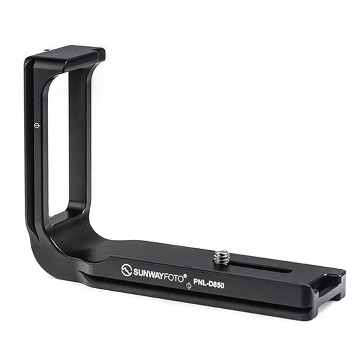 De PNL-D850 L-Bracket voor Nikon D850 van Sunwayfoto is een speciaal plaatontwerp uit één stuk met Arca-compatibele zwaluwstaartbevestigingen. Hierdoor kan de camera in een verticale of horizontale richting worden geplaatst zonder dat je het middelpunt van de as op een statiefkop verliest. De CNC-gefreesde aluminium L-beugel behoudt toegang tot de batterijklep en datapoorten van de camera, maar als je meer toegang tot de poorten nodig hebt, kan de camera door het kanaal met sleuven aan de onderkant van de beugel naar voren schuiven door de camera los en vast te draaien. bevestigingsbout.