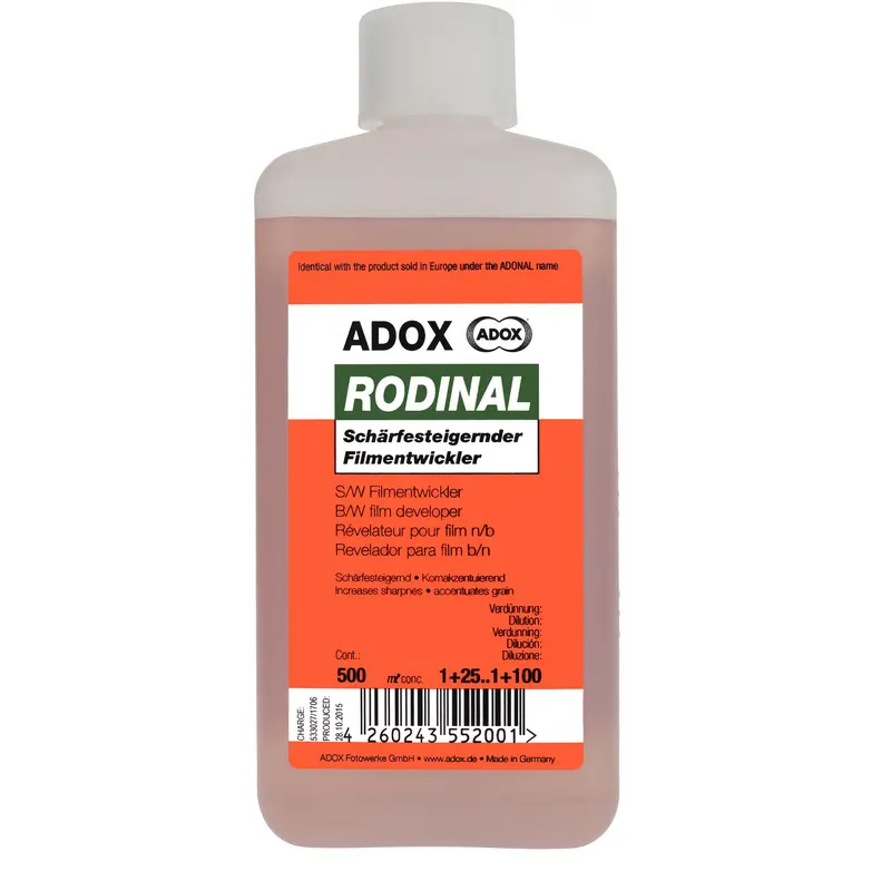 Adox Rodinal B/W film ontwikkelaar is een klassieke keuze voor zwart-wit fotografen die op zoek zijn naar een betrouwbare en consistente ontwikkelaar. Deze formule staat bekend om zijn scherpe korrelstructuur en uitstekende scherpte, waardoor je zwart-witfilms tot in detail kunt ontwikkelen. Rodinal biedt een lange houdbaarheid en een krachtige werking, ideaal voor zowel beginners als ervaren analoge fotografen.
