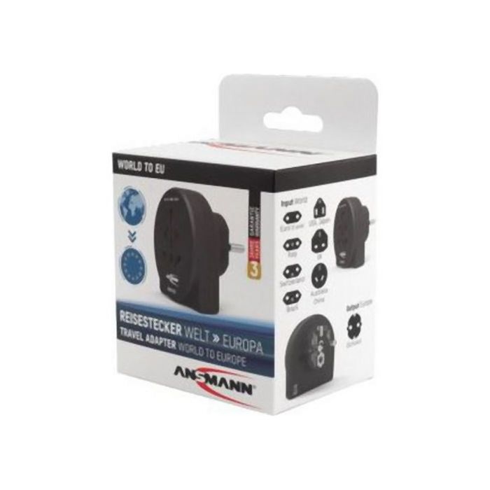 De Ansmann Reisstekker \”World to EU\” is een slimme reisadapter met aardingspen. Elke reiziger kent het probleem: het meegebrachte elektrische apparaat kan niet worden gebruikt in het reisland, omdat de stekker niet past. Ansmann heeft hiervoor de ideale reisgenoot in haar assortiment: Ansmann reisstekkkers zijn veilig, betrouwbaar en van de hoogste kwaliteit. Dankzij de geïntegreerde veiligheidsgeleider kunnen zelfs 3-pins apparaten met een Schuko-stekker worden gecontacteerd. Of het nu gaat om een laptop, haardroger, scheerapparaat, digitale camera of mobiele telefoon – de Ansmann reisstekkers bieden onbeperkte energie.