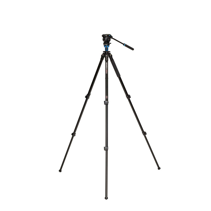 De Benro A1573FS2PRO is een video-statief met een enkele buis en de S2 PRO-videokop met platte basis. De middenkolom is voorzien van een nivelleringsadapter zodat het hoofd onafhankelijk kan worden genivelleerd zonder de statiefpoten te hoeven verstellen. Het statief heeft ook flip-locks, een gewichtshaak in de middenkolom en 3 onafhankelijke beenpositiehoeken. Rubberen en spijkervoeten zijn beide inbegrepen. De S2 PRO is gemaakt voor zowel kleine camera’s als smartphones en is een veelzijdige videokop met platte basis. De S2 PRO-videokop ondersteunt tot 5,5 lb/2,5 kg. Uitgerust met een 60 mm platte basis met een 3/8″-16 schroefdraad, is de S2 PRO een veelzijdig creatief hulpmiddel waarmee u de kop afzonderlijk op sliders, jibs of monopods kunt monteren. Andere kenmerken zijn: pan & tilt-vergrendeling, vaste pan & tilt drag, waterpas en twee 1/4″-20 accessoire mounts om monitorarmen of audiorecorders direct op het hoofd te bevestigen. Hierdoor kun je accessoires bevestigen zonder dat je daarvoor een kooi of tuigage nodig hebt. Kantelbereik voor de S2 PRO is +90?/-70?. De voorwaartse kanteling van 90 graden helpt bij tafelopstellingen. De S2 PRO beschikt ook over een verbeterde CNC-gefreesde aluminium glijdende cameraplaat.