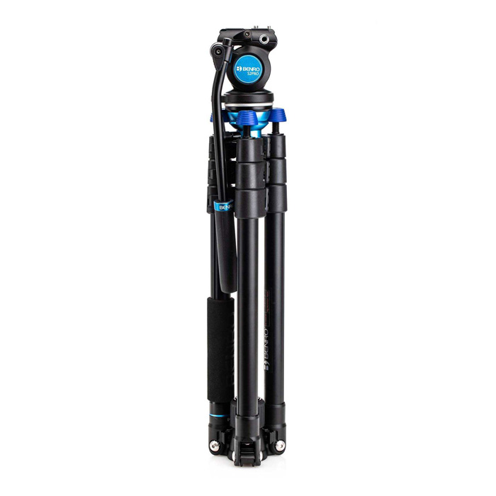 De Aero 2 PRO video-reisstatieven zijn de meest compacte en lichtgewicht die we aanbieden. De nieuw ontworpen S2PRO-videokop is het meest geschikt voor kleine camera-installaties en kan tot 2 kg dragen. Dankzij de omgekeerde opklapbare statiefpoten kan het statief compact zijn voor op reis en de S2PRO-videokop met platte basis kan worden verwijderd. De middenkolom is voorzien van een nivelleringsadapter zodat het hoofd onafhankelijk kan worden genivelleerd zonder de statiefpoten te hoeven verstellen. Behalve dat het een statief is, kan een van de poten worden losgemaakt en met de middenkolom worden verbonden om een volledig functionerende video-monopod te worden.