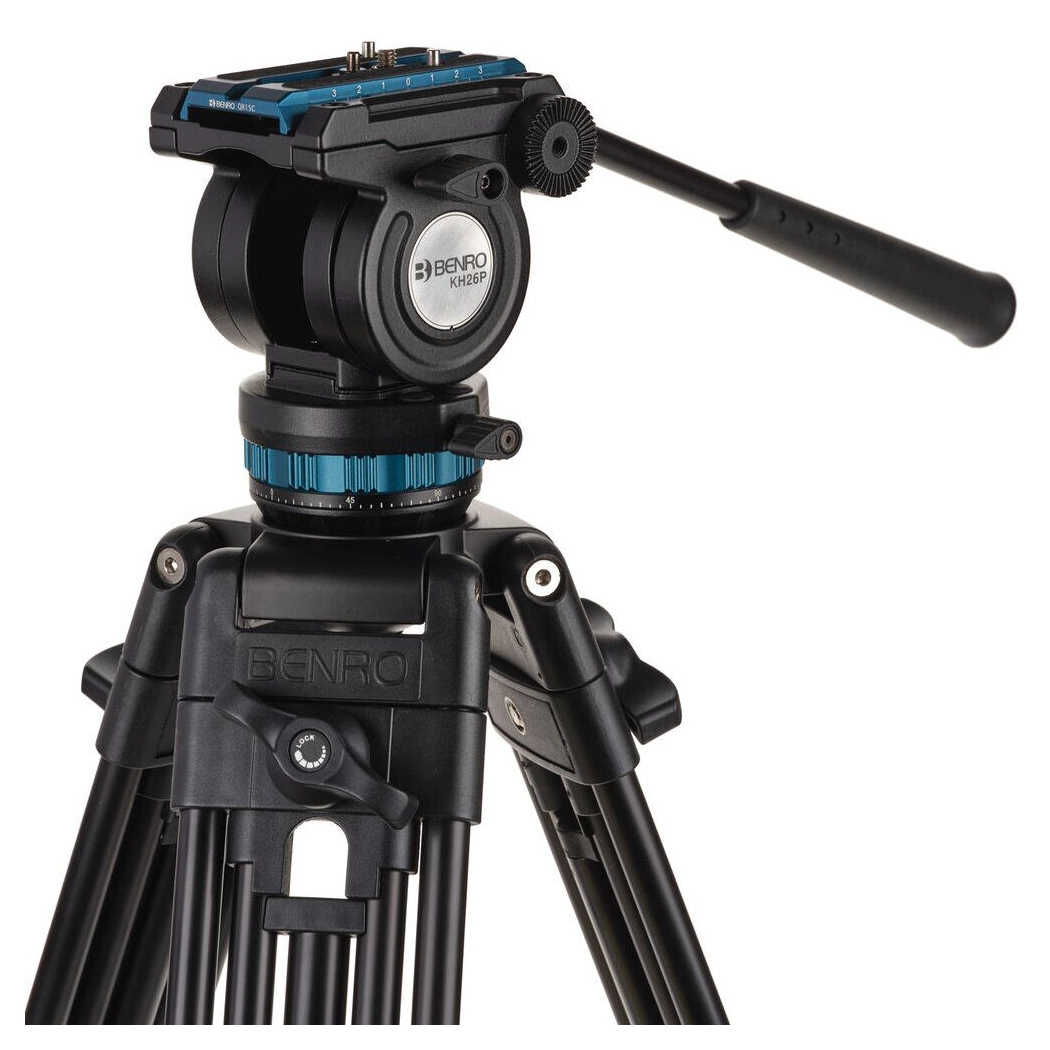 Het Benro Videostatief KH26PC is een stevig aluminium statief met een videokop die continue pan-drag control biedt. Dankzij de snelkoppelingsplaat bevestig je razendsnel je camera, bijvoorbeeld bij het wisselen tussen shots op een oneffen ondergrond.