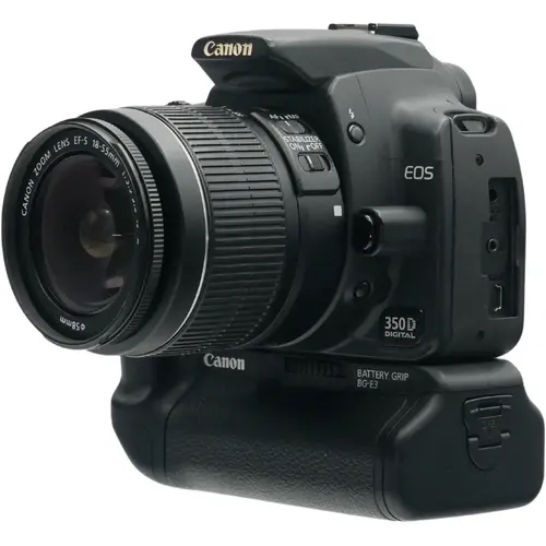 Met de Canon EOS 350D kit haal je een complete, betaalbare en betrouwbare DSLR-set in huis die ideaal is voor dagelijks gebruik, reizen en creatieve fotografie. Dankzij de combinatie van de 18-55mm IS II lens en de BG-E3 grip ben je klaar voor elke fotosessie.