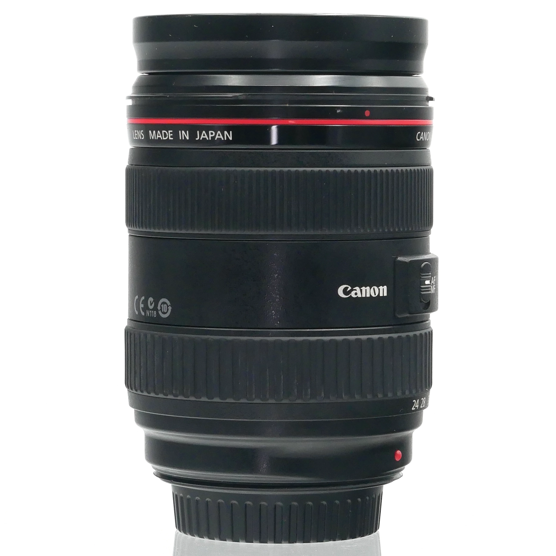 De Canon EF 24-70mm f/2.8L USM is een professionele standaardzoomlens met constant f/2.8-diafragma, snelle USM-autofocus en hoogwaardige L-serie optiek. Perfect voor portret-, landschap- en reportagesfotografie. Conditie: Dit objectief werkt naar behoren, rondom zijn er wat gebruikerssporen te zien, het glas is onbeschadigd. Bekijk de foto’s voor een impressie, of kom langs bij ons in de winkel.