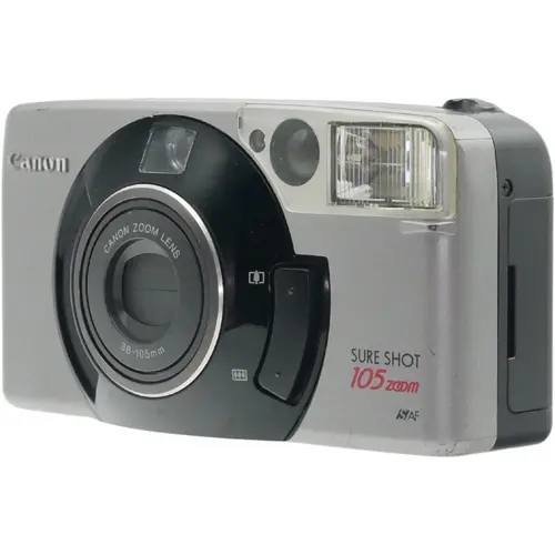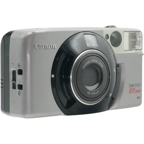 De Canon Sure Shot 105 Zoom (circa 1997), ook bekend binnen de Autoboy-serie, is een hoogwaardige en volledig automatische 35mm point-and-shoot camera. Met zijn veelzijdige 38-105mm f/3.8-9.9 zoomlens, 3-punts Ai-AF autofocus en ingebouwde flitser is dit een ideale analoge camera voor dagelijks gebruik, reizen en spontane fotografie.