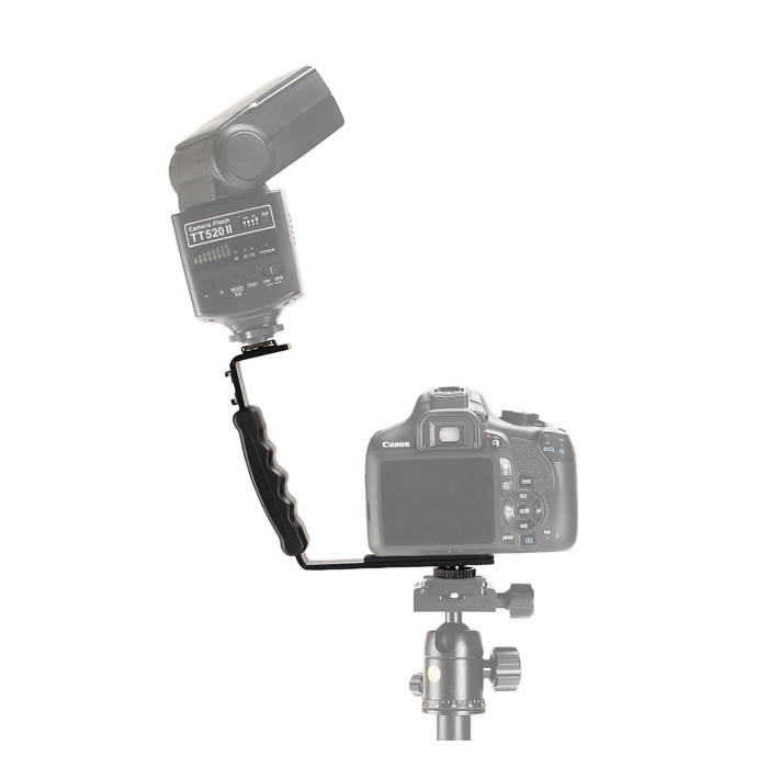Flitsbeugels zijn ontworpen om de afstand tussen de flitskop en de lens te vergroten om het optreden van rode ogen tot een minimum te beperken en om flitsschaduwen achter het onderwerp te verminderen. Door de Caruba 2 Hot Shoe Mount L Bracket te gebruiken, is de flitser iets uit het midden geplaatst wat meer dimensie toevoegt aan gezichten bij portretfotografie.