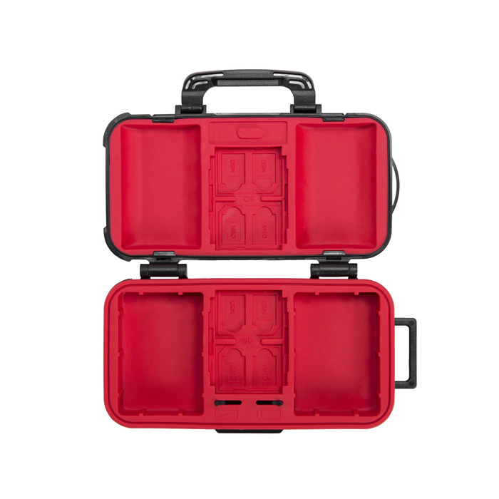 Waterdichte opslag voor de juiste bescherming. Geschikt voor 2 camera batterijen en 14 geheugenkaarten. Waterproof en zeer handig om mee te nemen. Met batterij indicator.