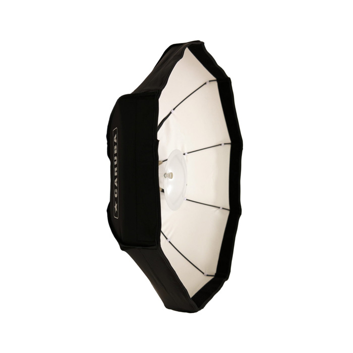 De Caruba Beautydish 80cm zorgt voor een geheel andere licht-output met meer spreiding en een gemiddeld contrast. De flitsbuis en instellamp zijn afgedekt door een diffuus kap die zorgt voor een goede verspreiding van het licht. De opvouwbare beautydish heeft een doorsnee van 80cm en is ideaal voor portretten en fashion shoots. Voor een meer diffuse belichting zet je het meegeleverde diffuusdoek aan de beautydish vast.