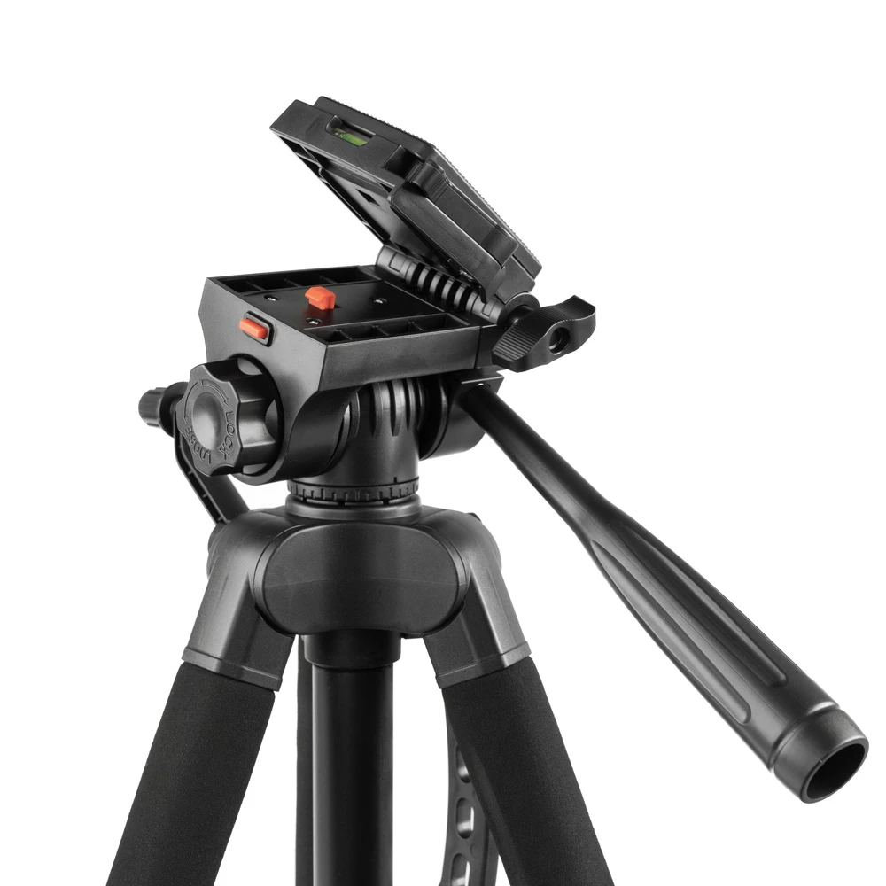 De statiefkop beschikt over een quick release systeem, waardoor je jouw camera snel en eenvoudig kunt bevestigen. De 90 graden kantelfunctie maakt het mogelijk om soepel te schakelen tussen horizontale en verticale stand, terwijl de waterpasjes nauwkeurige uitlijning garanderen voor perfecte shots.