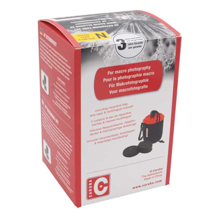 Deze Caruba Extension Tube set (type II) bestaat uit drie tussenringen die afzonderlijk van elkaar te gebruiken zijn, maar ook gecombineerd kunnen worden. Extension tubes zijn perfect voor macrofotografie of voor het maken van bijzondere close-ups.