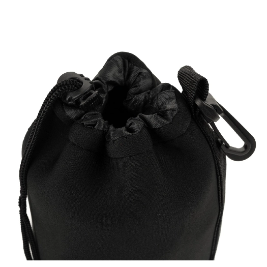Dankzij het handige trekkoord open en sluit je de tas moeiteloos, terwijl de karabijnhaak ervoor zorgt dat je hem veilig aan je riem of tas kunt bevestigen, ideaal voor fotografen die onderweg zijn.