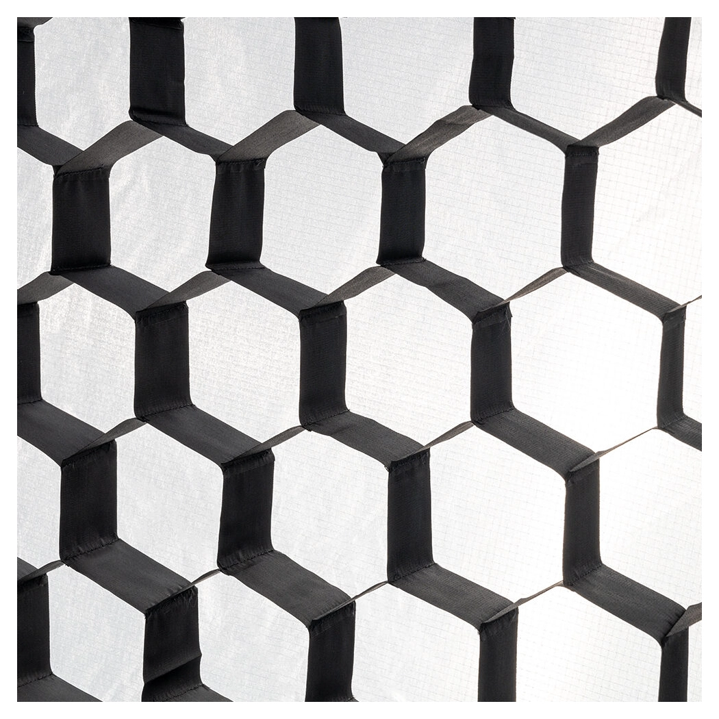 De zeskantige honingraatstructuur van het grid is stevig gestikt, wat zorgt voor extra stabiliteit en een lange levensduur. Het voorkomt dat het grid vervormt, zelfs bij intensief gebruik. Door de grid direct op je softbox te plaatsen, kun je de lichtkwaliteit behouden, maar tegelijkertijd de lichtverspreiding nauwkeurig sturen.