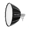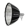 Met zijn 16-zijdige, ronde vorm creëert de softbox een omhullende, gelijkmatige belichting die perfect is voor portretten, productfotografie of video-opnamen. De interne en externe diffusers zorgen voor veelzijdige lichtverzachting, zodat je snel kunt schakelen tussen een zachte uitstraling of een krachtigere lichtopbrengst.