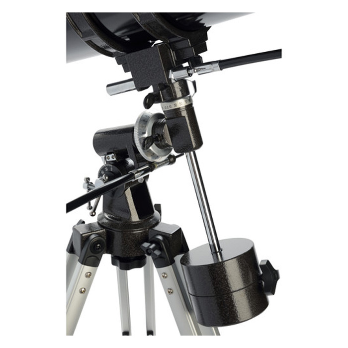 De meegeleverde handmatige equatoriale houder is voorzien van slow-motion bedieningskabels met grote knoppen om het gemakkelijk te maken om objecten te volgen, zelfs als u handschoenen draagt, terwijl ook trillingen worden geminimaliseerd die worden veroorzaakt door het hanteren van de houder met uw handen; en duidelijk zichtbare indicatoren op de assen van rechte klimming en declinatie. Een in hoogte verstelbaar aluminium statief rondt de rig af met een lade voor accessoires zoals oculairs, filters en verlichting.