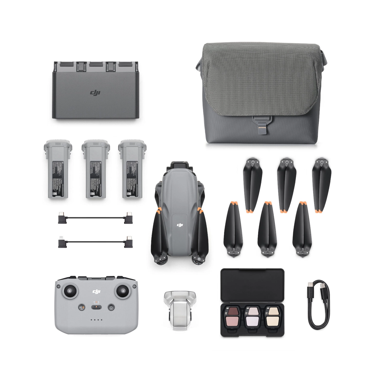 • Meegeleverd: RC-N3 controller, 3 Flight Batteries, Charging Hub, ND-filterset, Draagtas