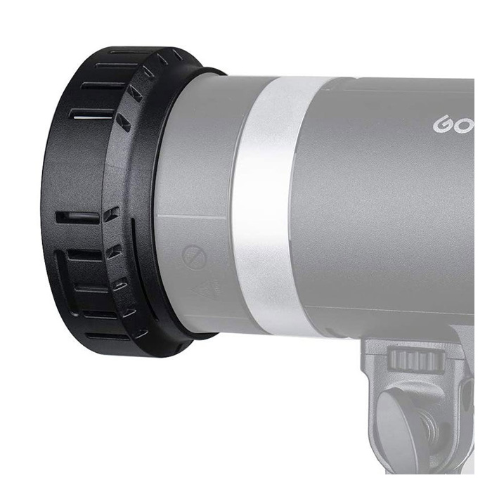 De Godox AD-AS Adapter is een noodzakelijke accessoire om de Godox SN04 snoot op de Godox AD300 Pro flitskop te monteren.