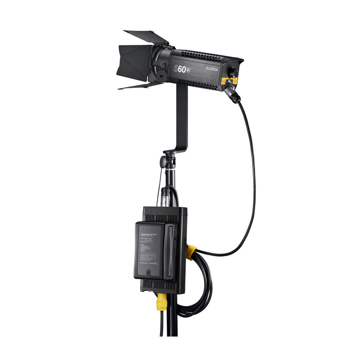 De Godox S60Bi kan worden gevoed via netstroom (100-240VAC), wat betekent dat je hem wereldwijd kunt gebruiken. Als wisselstroom niet beschikbaar is, biedt de optionele V-mount accuplaat op de controller een handige oplossing. Hierdoor kun je de lamp op locatie gebruiken, zelfs als er geen stopcontact in de buurt is.