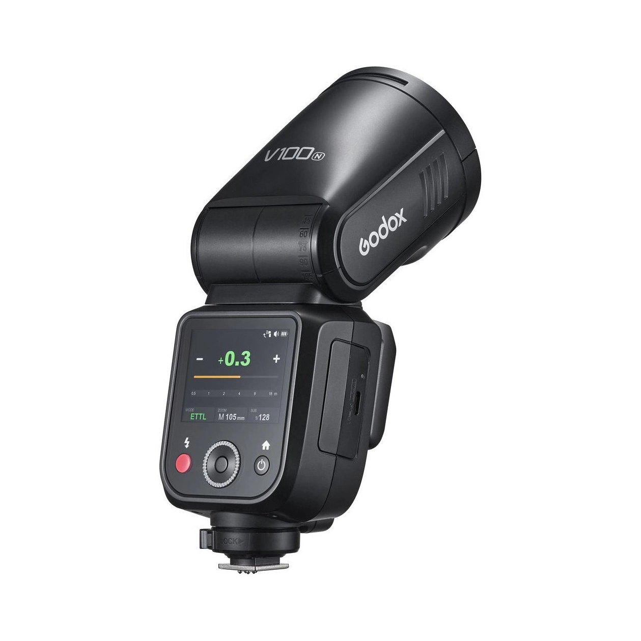 Godox Speedlite V100 Nikon: krachtige 100W flitser met snelle recycletijd, draadloze bediening en TTL-ondersteuning. Perfect voor elke Nikon-fotograaf!