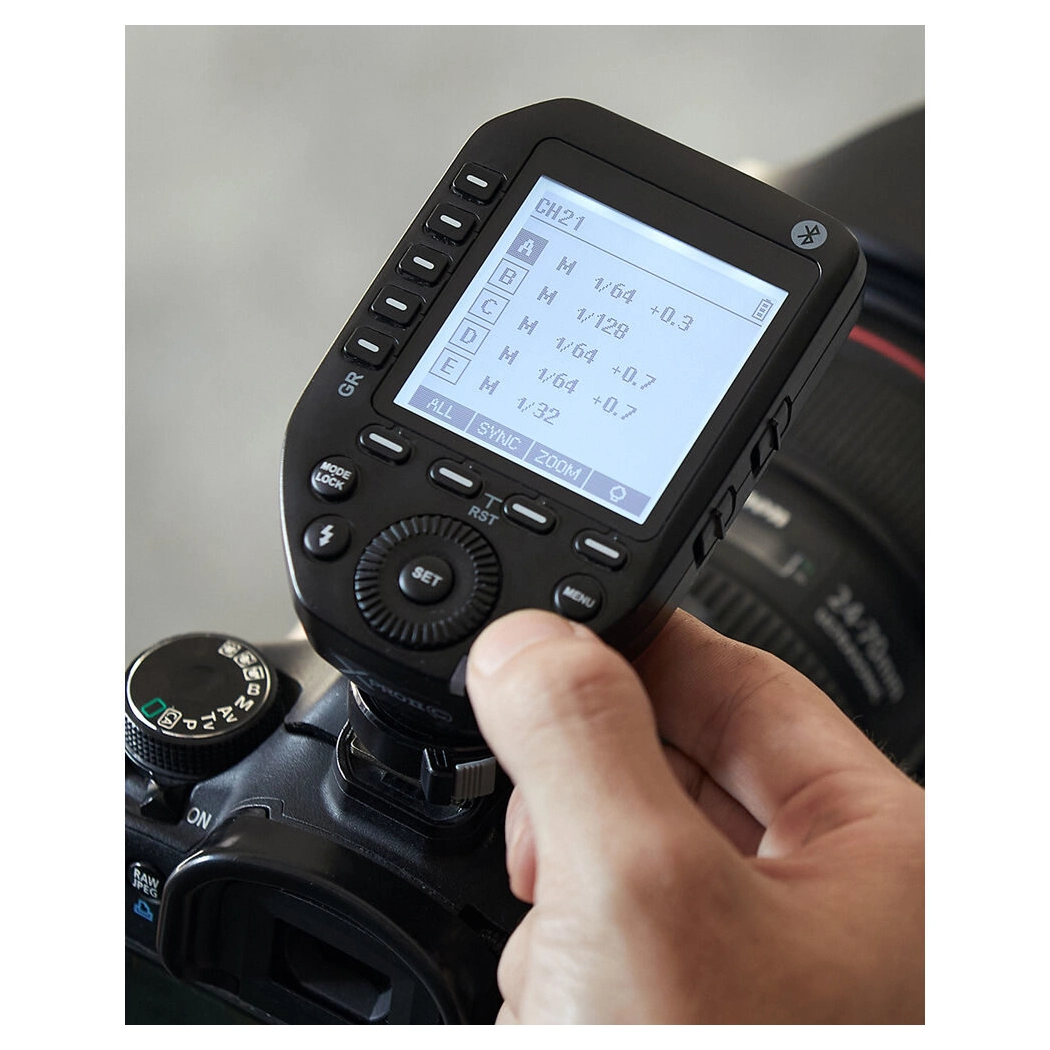 Met de ingebouwde scanfunctie kies je automatisch het beste kanaal, ideaal voor opstellingen met meerdere flitsers. Daarnaast kun je via de Godox Flash app intuïtief je flitsers bedienen, zelfs als ze ver van je camera verwijderd zijn. Dit maakt je workflow sneller en efficiënter.
