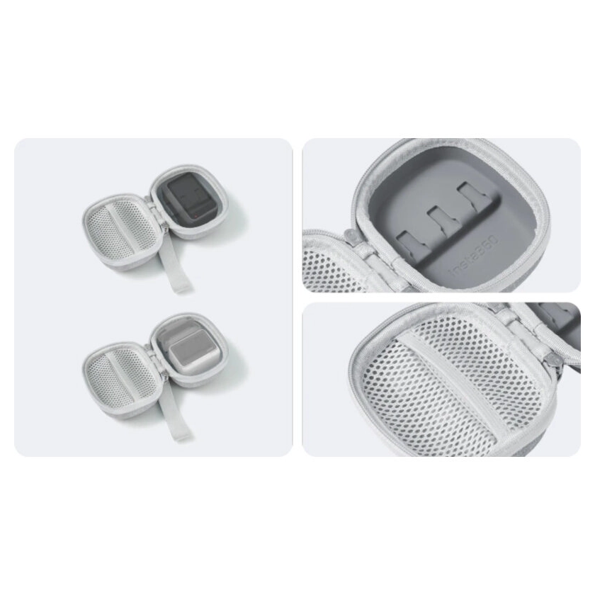 De Insta360 Mini Carry Case beschermt je apparatuur tegen water en stof, zodat je camera altijd in topstaat blijft, zelfs als het weer omslaat. De slimme indeling, inclusief een mesh binnenvak voor geheugenkaarten en kabels, zorgt ervoor dat alles netjes en geordend blijft.