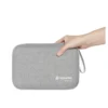 De compacte stoffen hoes met zachte buitenkant is licht, duurzaam en stijlvol. De handige ritssluiting zorgt voor snelle toegang, terwijl de ingebouwde polsband het dragen van de case extra makkelijk maakt.