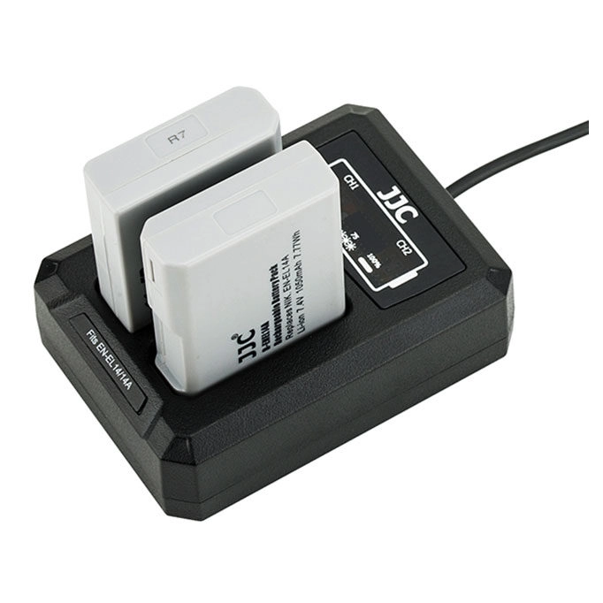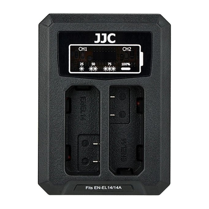 Met de JJC DCH-ENEL14A USB Dual Battery Charger laad je eenvoudig twee Nikon EN-EL14 of EN-EL14A accu’s tegelijk op. Dankzij de USB-poort kun je opladen via netstroom, laptop, powerbank of autolader. Of je nu thuis bent of onderweg, je accu’s zijn altijd klaar voor gebruik.