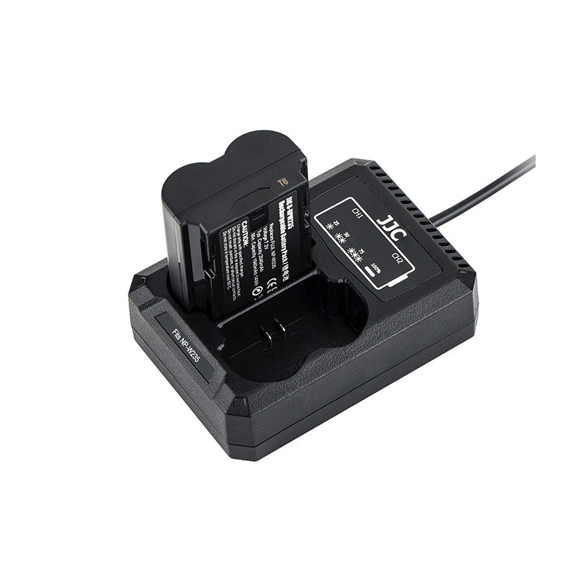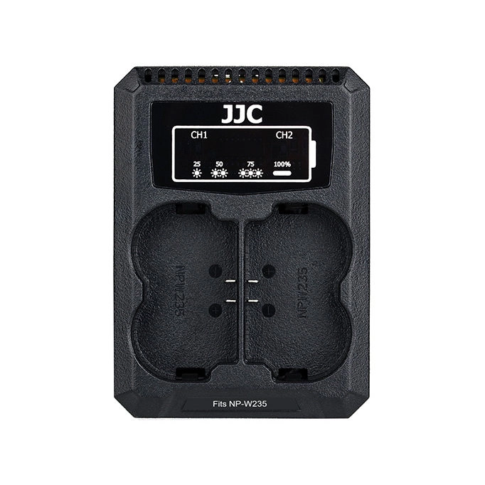 De JJC DCH-NPW235 USB Dual Battery Charger biedt een slimme oplossing voor het opladen van twee Fujifilm NP-W235 accu’s tegelijk. Met de USB-poort kun je je accu’s eenvoudig opladen via netstroom, laptop, powerbank of autolader, zodat je altijd voorbereid bent, waar je ook bent.