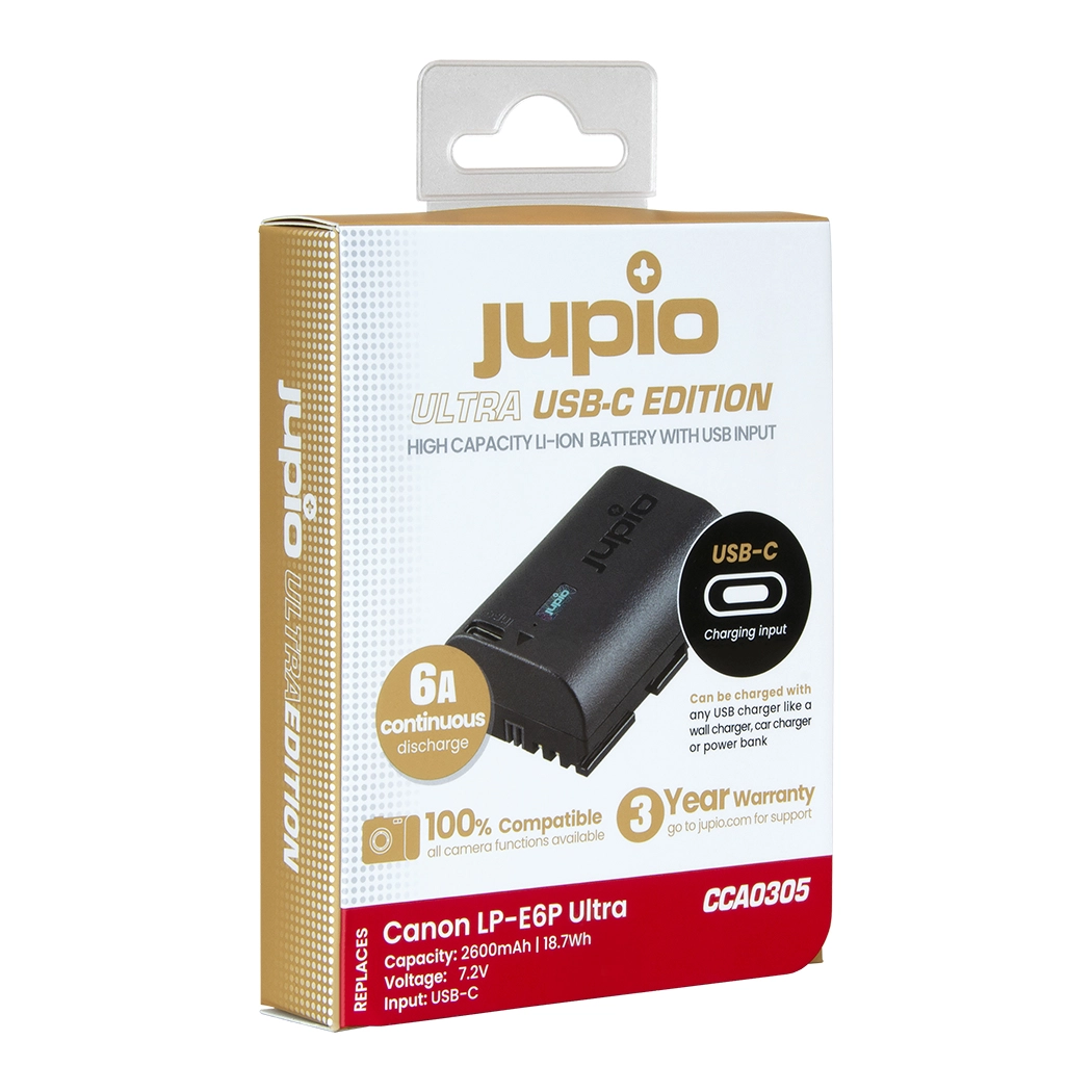 De Jupio CCA0305 (LP-E6P Ultra) accu biedt een indrukwekkende capaciteit van 2600mAh, aanzienlijk meer dan de originele Canon accu van 2130mAh. Dit betekent dat je langer kunt fotograferen of filmen zonder te hoeven wisselen. Ideaal voor intensieve shoots waarbij een betrouwbare en langdurige energiebron onmisbaar is.
