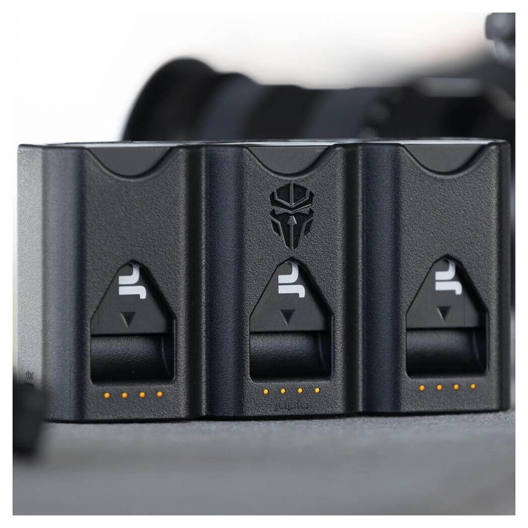 Ontdek de Jupio PR1ME Tri Charge FZ100, een unieke oplader waarmee je tot wel drie Sony NP-FZ100 batterijen tegelijk kunt opladen.