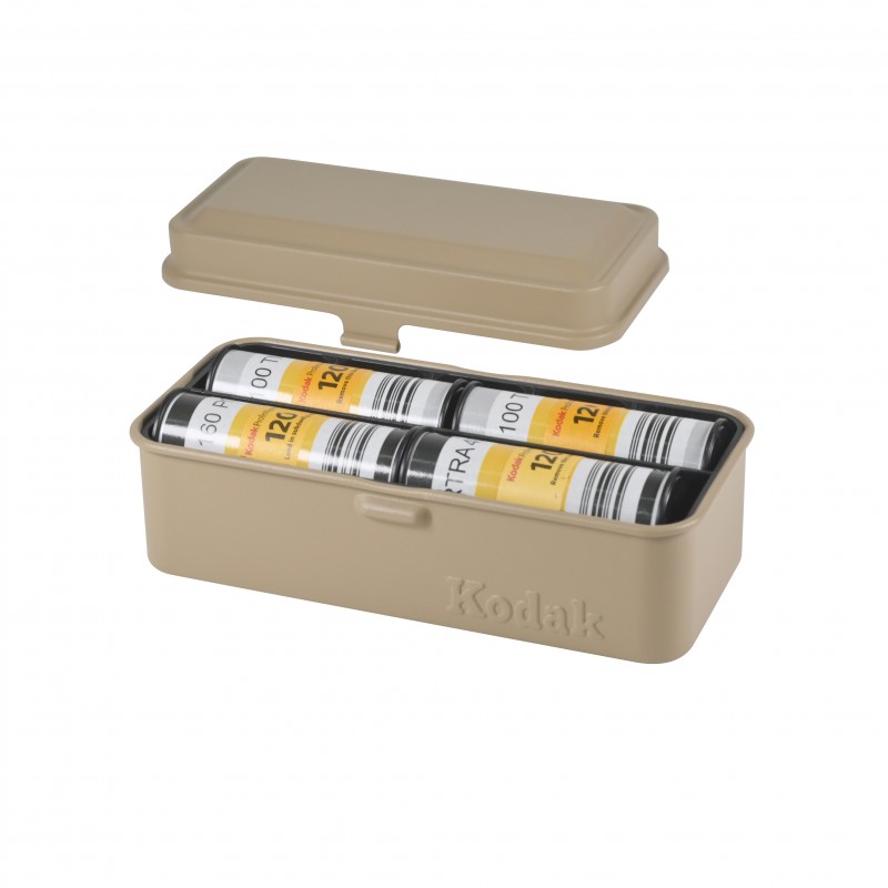 De Kodak Film Case 135 Large Beige valt direct op door zijn rustige, tijdloze kleur en robuuste metalen behuizing. Deze filmcase is speciaal gemaakt om jouw 135mm of 120mm filmrollen veilig en overzichtelijk te bewaren. Of je nu onderweg bent met je analoge camera of je films thuis wilt organiseren, met de Kodak Film Case 135 Large Beige neem je gemakkelijk tot tien 35mm-rollen of acht 120mm-rollen mee. Dankzij het compacte formaat past hij gemakkelijk in je tas, terwijl je filmrollen goed beschermd blijven.
