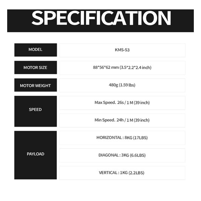 Regel draadloos uw soepele camerabewegingen bij gebruik van rigs met een gewicht tot 7.7 kg met de riemaangedreven P1 Carbon Slider met KMS-S3 Wireless Motorized System van Konova. Deze kit combineert een 80 cm P1 koolstofvezel slider en een KMS-S3 motor om een op afstand bedienbare slider kit te creëren. De lichtgewicht en duurzame slider ondersteunt tot 10 kilo, en de S3 motor en wagen kunnen rigs tot 7,7 kg ondersteunen.