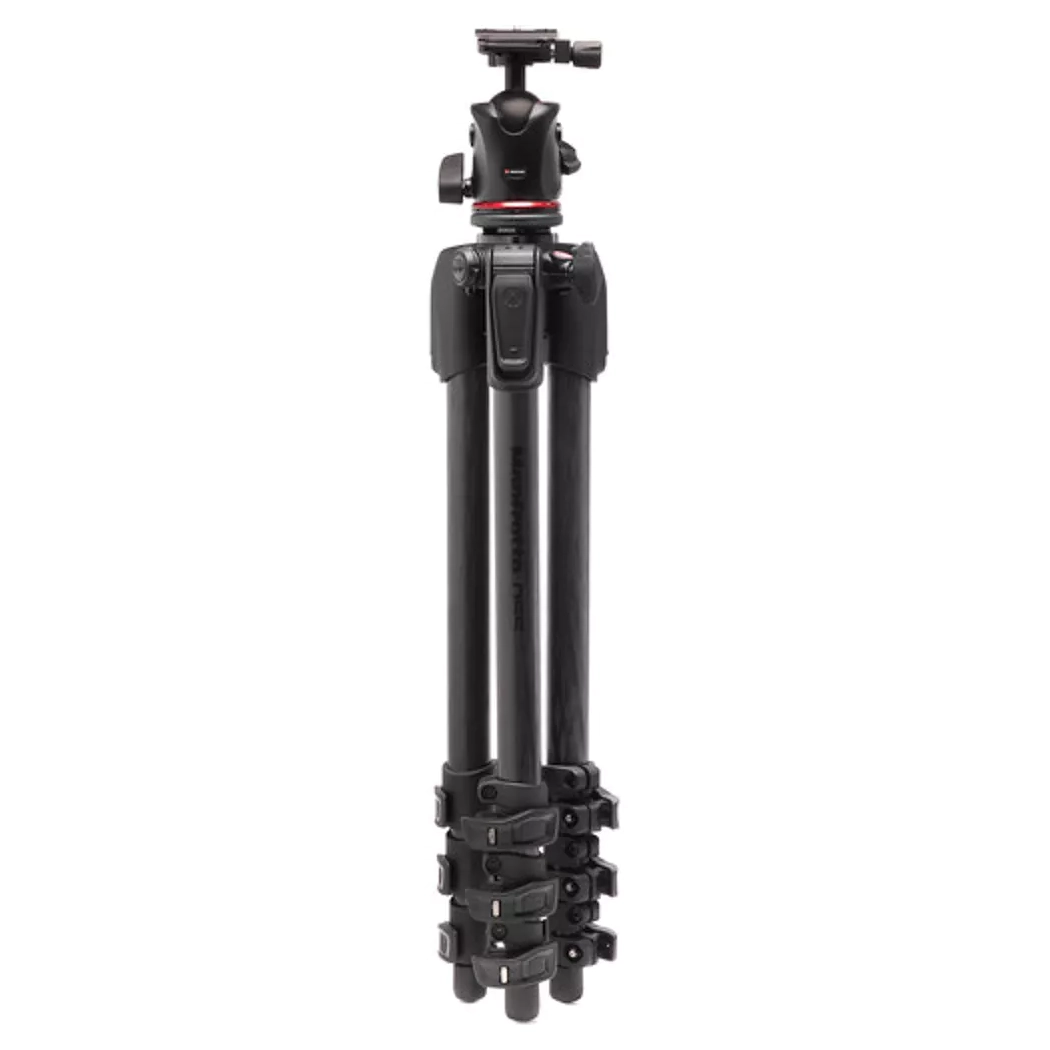 Dit statief is gebouwd met hoogwaardige carbonfiber poten in vier secties en afgewerkt in stealth-zwart voor een professionele uitstraling. De maximale werkhoogte bedraagt 181,5 cm, terwijl je hem tot slechts 9,9 cm kunt verlagen voor ultra-lage shots. Ingeklapt is hij 65 cm lang — perfect om mee te nemen in een tas of koffer. De stevige balhoofdconstructie zorgt voor stabiele positionering en snelle aanpassingen.