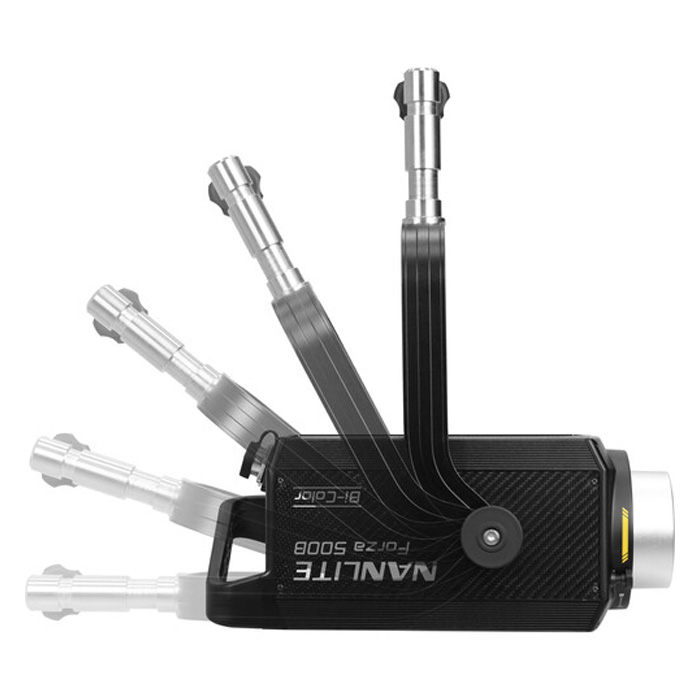 Het licht heeft een gebogen, roterend juk met een eenzijdige vergrendeling en voorwaartse articulatie. Het maakt 360° rotatie mogelijk om een groter kantelbereik te bieden met optionele grote modifiers. Het beschikt ook over een ingebouwde parapluhouder om uw lichtvormende opties uit te breiden. Bovendien maakt de Bowens-montagemogelijkheid van de lamp de Forza 500B II compatibel met een breed scala aan modifiers.