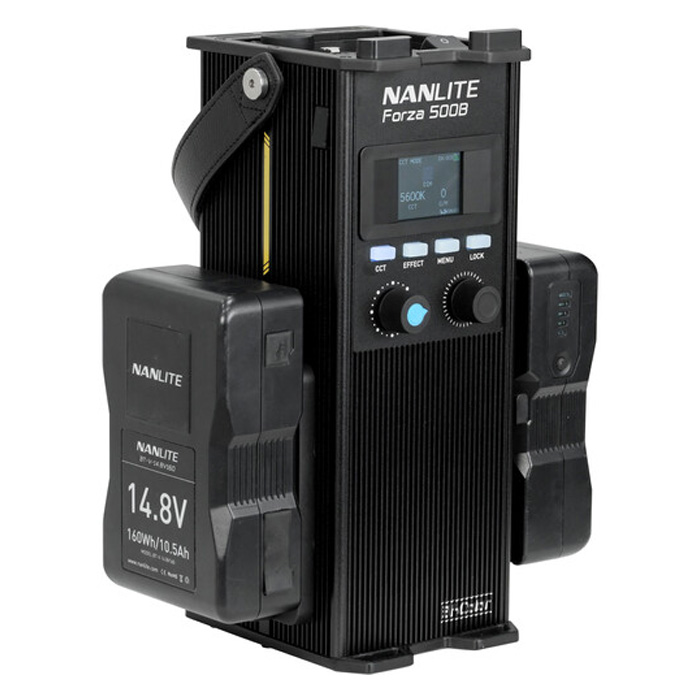 Geoptimaliseerd voor gebruik in de studio of op locatie, is de besturingseenheid van de lamp uitgerust met gemakkelijk toegankelijke batterijplaten aan de zijkant die geschikt zijn voor V-mount batterijen. De Forza 500B II werkt op 26V/14,8V V-mount batterijen of netstroom voor eenvoudige bediening op elke locatie, ongeacht de beschikbaarheid van stroom.