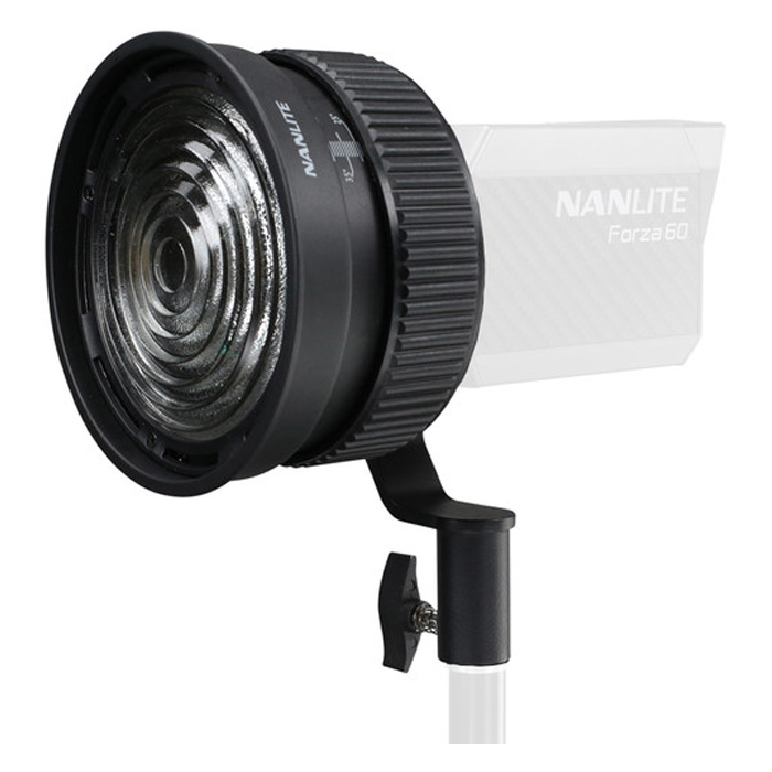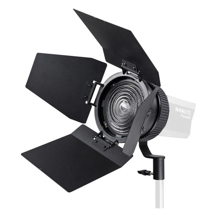 De FL-11 Fresnel-lens voor Forza 60 van NanLite past de brede bundelspreiding van het licht aan tot een instelbare stralingshoek van 10 tot 45 graden. De Fresnel-lens profiteert van NanLite’s Quick Change Modifier Mount en kan met een druk op de knop en een kwartslag worden bevestigd aan de speciaal ontworpen NanLite Forza 60 light modifier mount. De meegeleverde barndoors maken een verdere aanpassing van de bundelspreiding mogelijk om selectieve verlichting te vergemakkelijken. Een gewatteerde draagtas is inbegrepen voor opslag en transport.