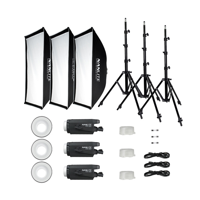 Kit bestaande uit 3x FS-150, 3x Statief en 3x softbox