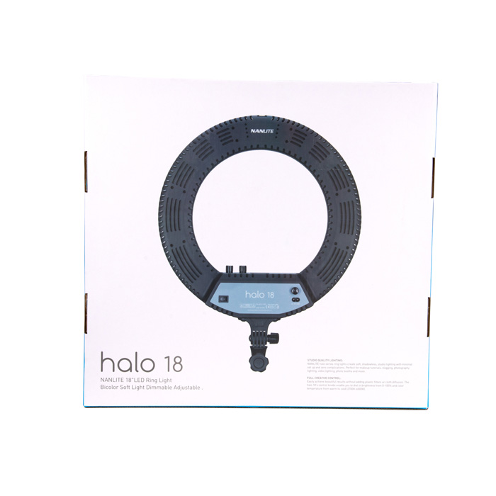 Nanline Halo 18, Halo LED-ringlichten van NanLite zorgen voor een aantrekkelijke, zachte, bijna schaduwloze lichtkwaliteit met interessante, ringvormige lichtstralen in de ogen van uw onderwerp. Perfect voor make-uphandleidingen, vloggen, fotografieverlichting, videoverlichting, fotohokjes en meer.