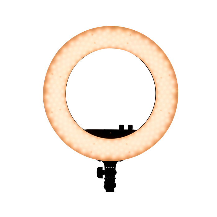 Met Halo-ringlampen kunt u snel prachtige resultaten van studiokwaliteit bereiken zonder plastic filters of doekdiffusie toe te voegen. Centraal geplaatste bedieningsknoppen die zowel voor als achter de lamp toegankelijk zijn, stellen u in staat om de helderheid in te stellen van 0-100%, zodat u niet heen en weer hoeft te bewegen om de vereiste lichtintensiteit te bereiken.