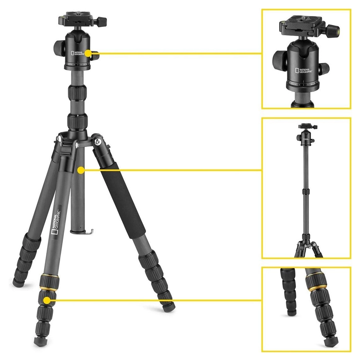 De National Geographic Travel Carbon Fiber BH Tw 5S is gemaakt voor reizende fotografen die geen concessies willen doen aan kwaliteit of gemak. Dit lichtgewicht statief van slechts 1,49 kg klap je in tot een compacte 37 cm – perfect voor in je rugzak. Of je nu door de bergen trekt of een stedentrip maakt, je hebt altijd een stevig en betrouwbaar statief bij de hand.