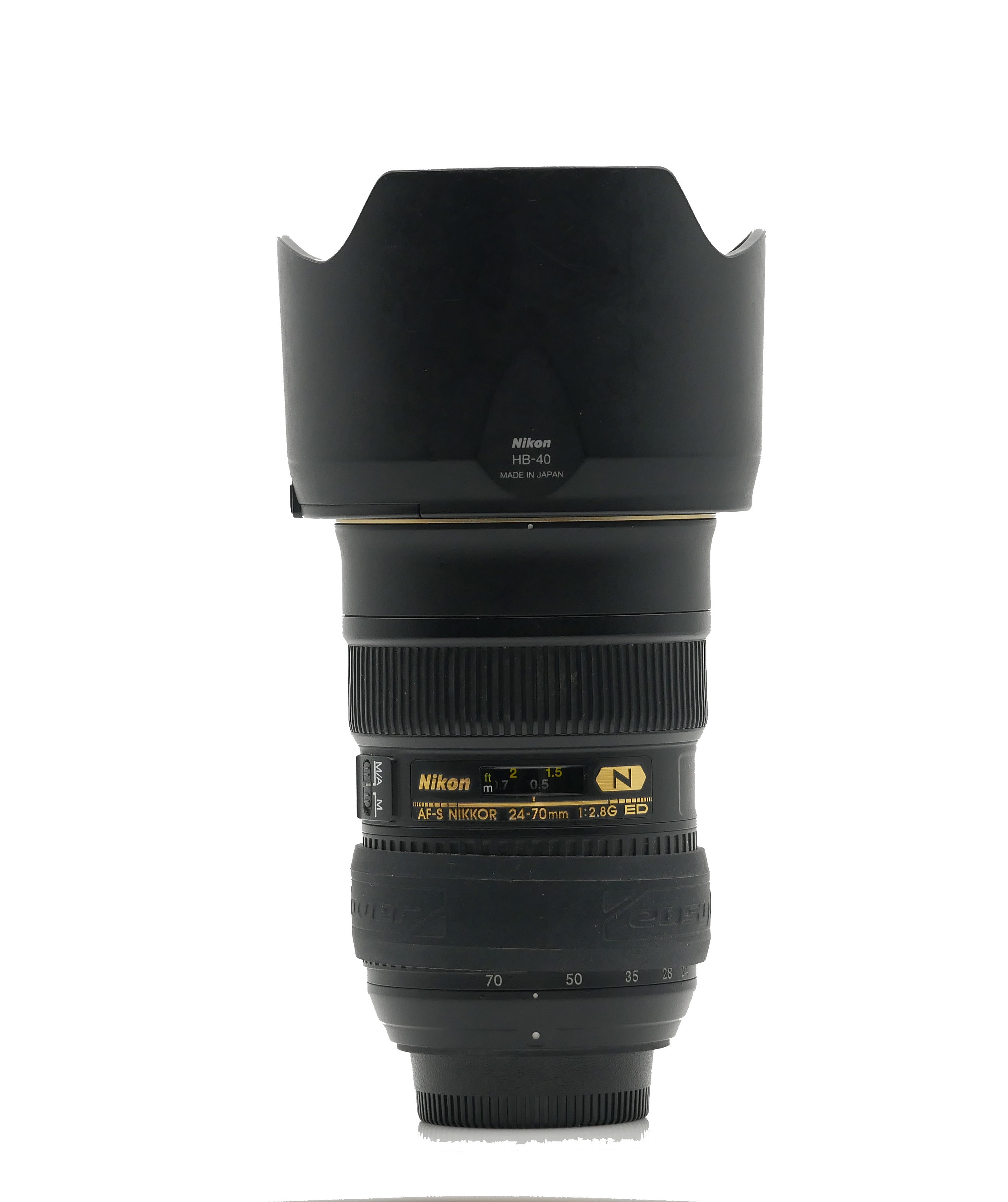 De Nikon AF-S 24-70mm f/2.8G voor FX is een tweedehands professionele zoomlens, getest en in uitstekende staat met garantie.