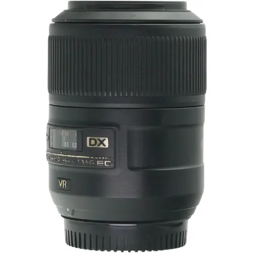 Nikon AF-S DX Micro 85mm f/3.5G ED VR macro-objectief met 1:1 vergroting, VR-beeldstabilisatie en stille autofocus voor scherpe close-ups. Conditie: Deze lens werkt naar behoren, heeft rondom lakschade en wat krasjes. Er zitten een paar stofjes achter het glas. Bekijk de afbeeldingen voor een betere indruk.