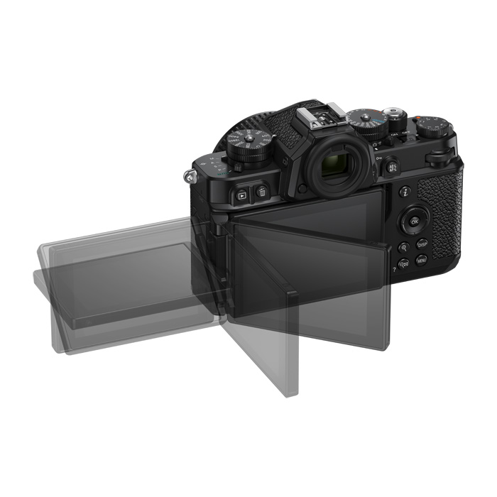 Met het scherm kunt u vanuit hoge en lage hoeken werken, terwijl het touchscreen-ontwerp intuïtieve bediening, navigatie en instellingsbediening mogelijk maakt. beschikt nu over een nieuwe Touch Fn-functie, waarmee u tegelijkertijd het aanraakscherm van de Z f kunt gebruiken om scherpstelpunten te verplaatsen, een onderwerp te selecteren om te volgen en tussen weergavemodi te schakelen, allemaal terwijl u de zoeker gebruikt.