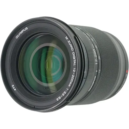 Olympus 12-200mm f/3.5-6.3 M.Zuiko Digital ED travelzoom voor Micro Four Thirds met groot zoombereik en weerbestendig ontwerp voor foto en video. Conditie: De lens heeft wat lichte gebruikerssporen, achter het glas zit er wat stof. Bekijk de afbeeldingen voor een betere indruk.