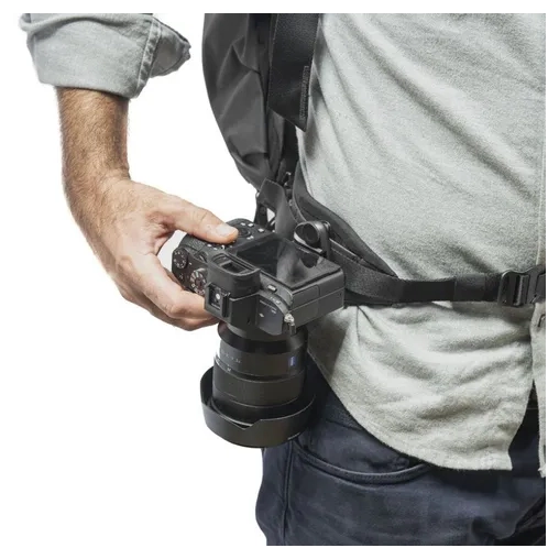 Dankzij de aluminium G-haaksluiting trek je de gordel eenvoudig aan of los. De band past zich aan elke lichaamsvorm aan, met comfortabele axiale bevestigingen en een gewatteerd bevestigingspunt voor je Capture Clip (apart verkrijgbaar). Handig: je kunt de gordel netjes wegstoppen achter het rugpaneel of onder de kleppen van je tas wanneer je hem niet gebruikt. Zo blijft je tas strak en overzichtelijk.