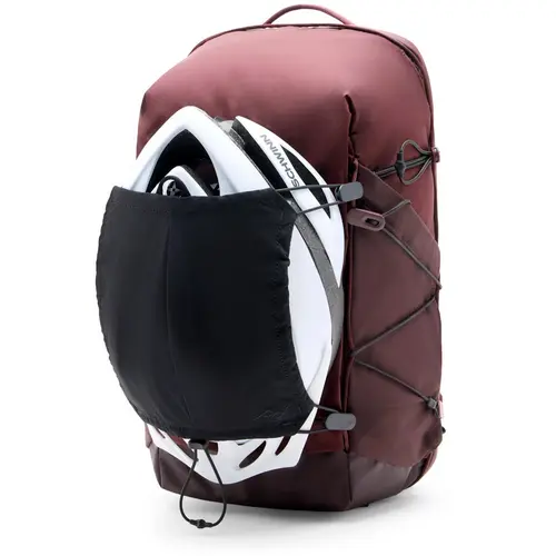 Of je nu onderweg bent op de motor, fiets of snowboard, deze draagoplossing houdt je helm veilig en strak tegen je tas – zonder dat hij in de weg zit.