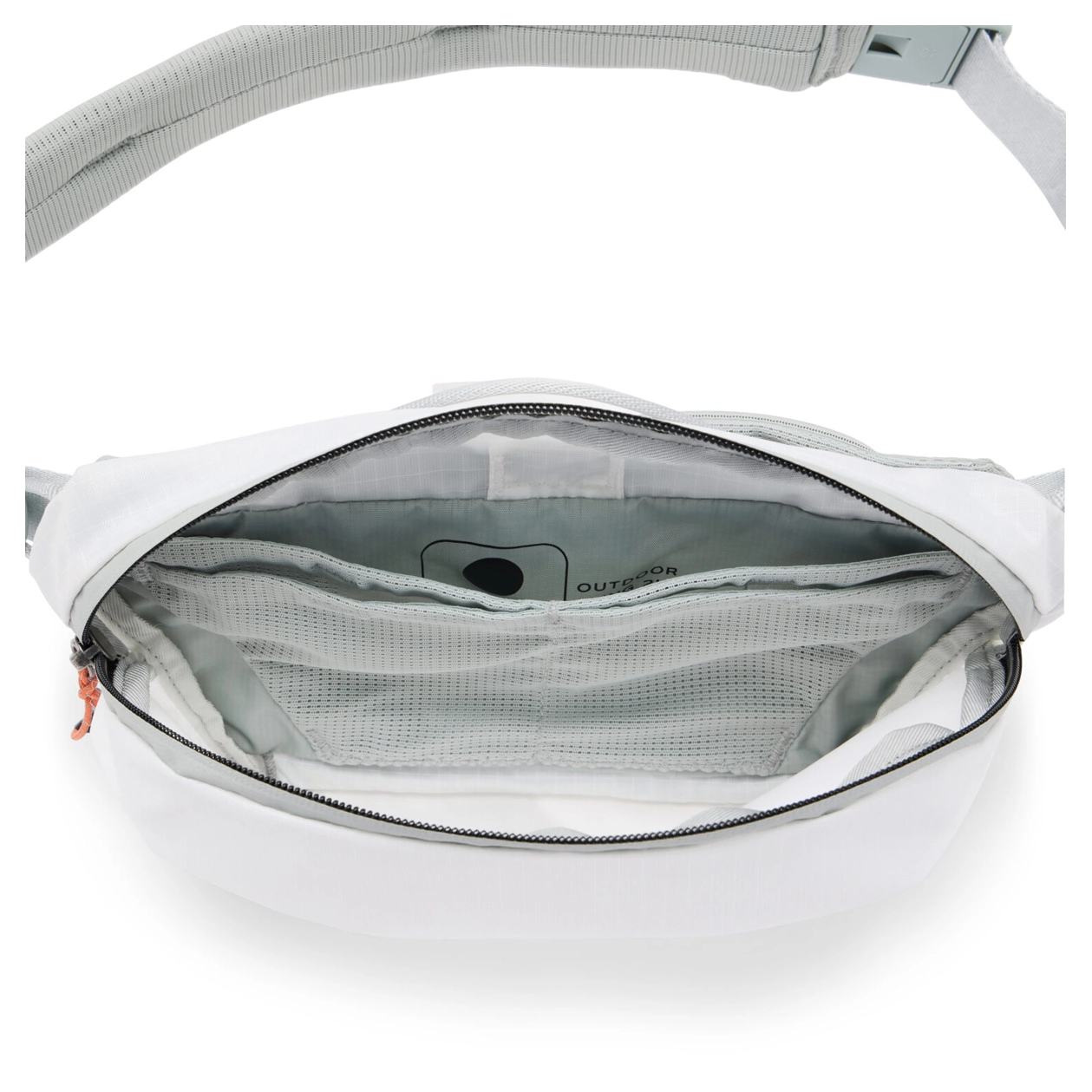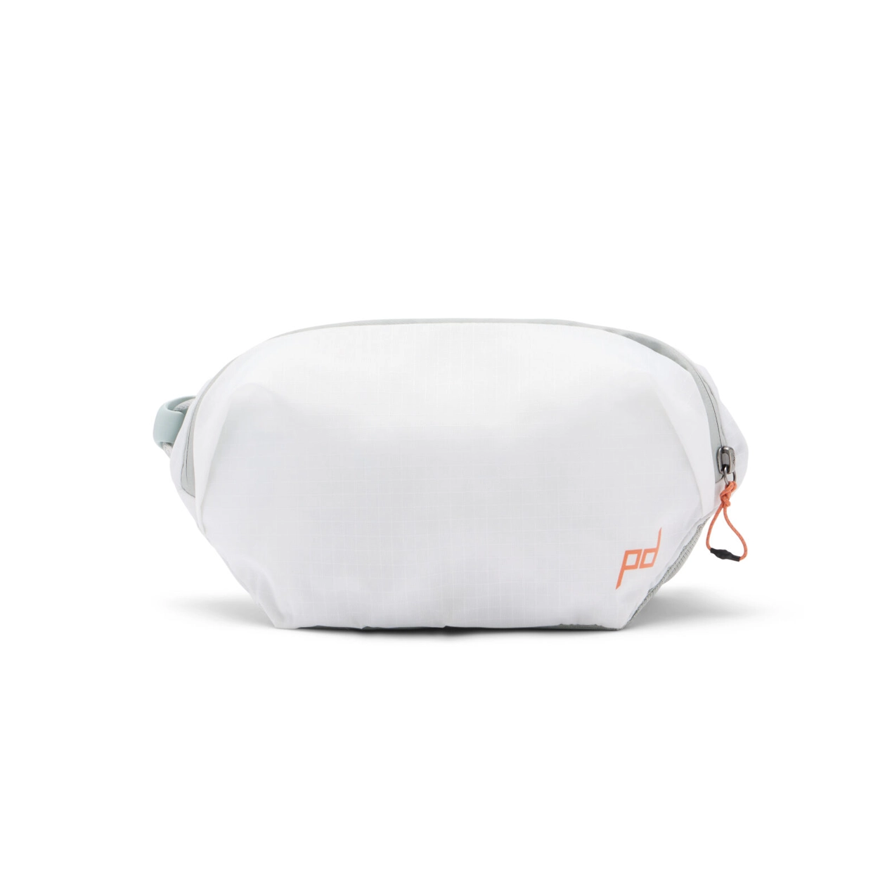 Peak Design Outdoor Sling 2L Cloud: compacte tas met 3 vakken, gewatteerde schouderriem en waterafstotende coating. Perfect voor licht reizen en outdoor avonturen.