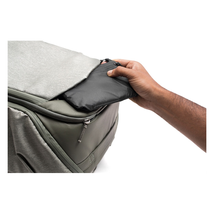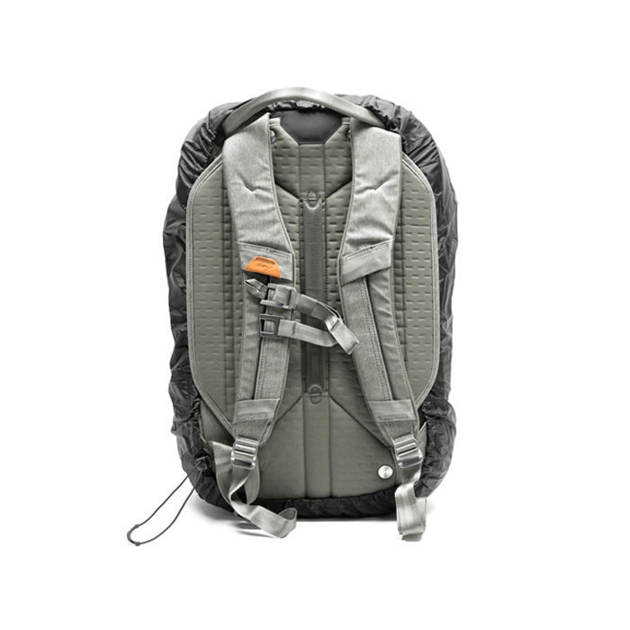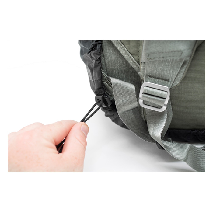Waterdichte, opbergbare regenhoes voor de Peak Design Travel Backpack 45L. Wanneer je totale bescherming nodig hebt tegen de elementen, is de ultra-lichte 45L Peak Design Rainfly je beste vriend. Het is dan ook niet een standaard regenhoes. Gemaakt van stoer 200D gesiliconiseerd ripstop nylon, vouwt de Rainfly zich samen in een geïntegreerde kleine draagtas. Dat tasje grendelt goed vast op de bevestigingspunten aan de buitenkant van de Travel Backpack 45L en kan netjes worden opgeborgen in een magnetisch verzegelde buitenhoes. Wanneer de regenbuien toeslaan, kun je de Rainfly direct uitrollen terwijl hij nog op je rugzak vastzit.