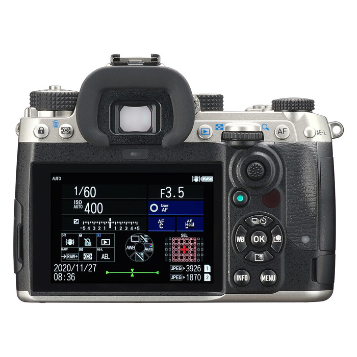 De K-3 Mark III heeft een volledig vernieuwd binnenwerk. Een grote en heldere prismazoeker met 100% beeldveld en ca. 1,05x vergroting stelt de fotograaf in staat zich volledig in de opname te verdiepen.